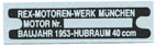 REX 1953 Typenschild für REX-Moped von 1953 mit 40 ccm aus eloxiertem Alublech, zum Gravieren und Nieten oder Kleben an den Rahmen ca. 15 x 53mm